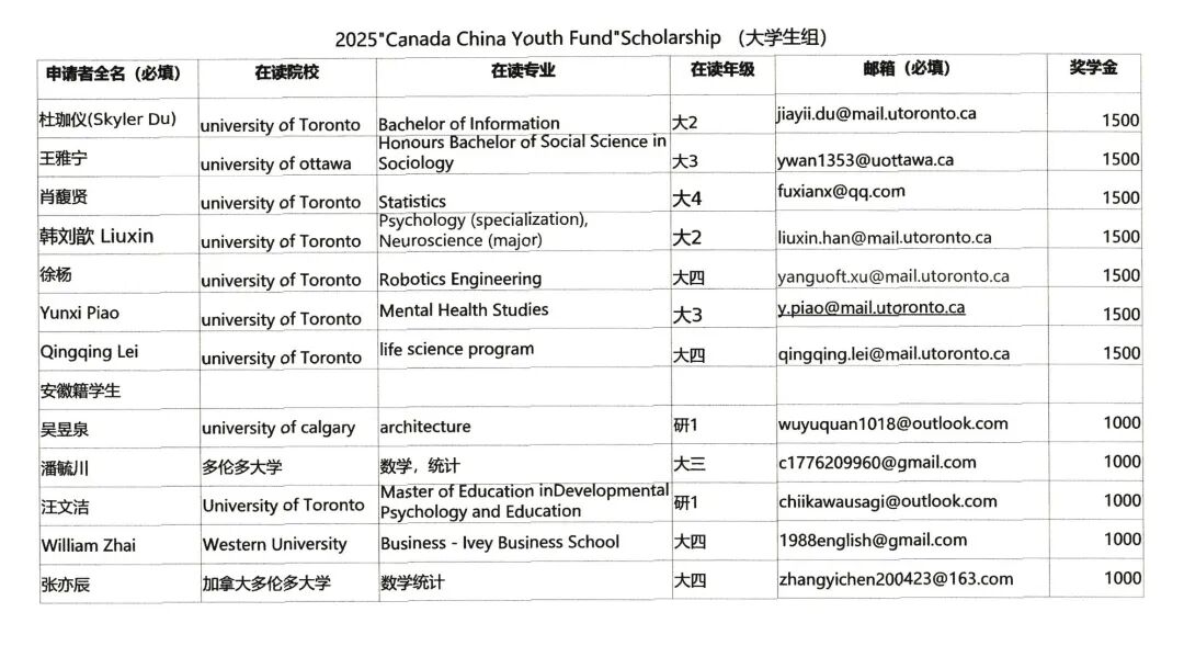加中安徽青年发展基金会自2020年7月成立,已经连续颁发了六届“加中青年基金”奖学金。